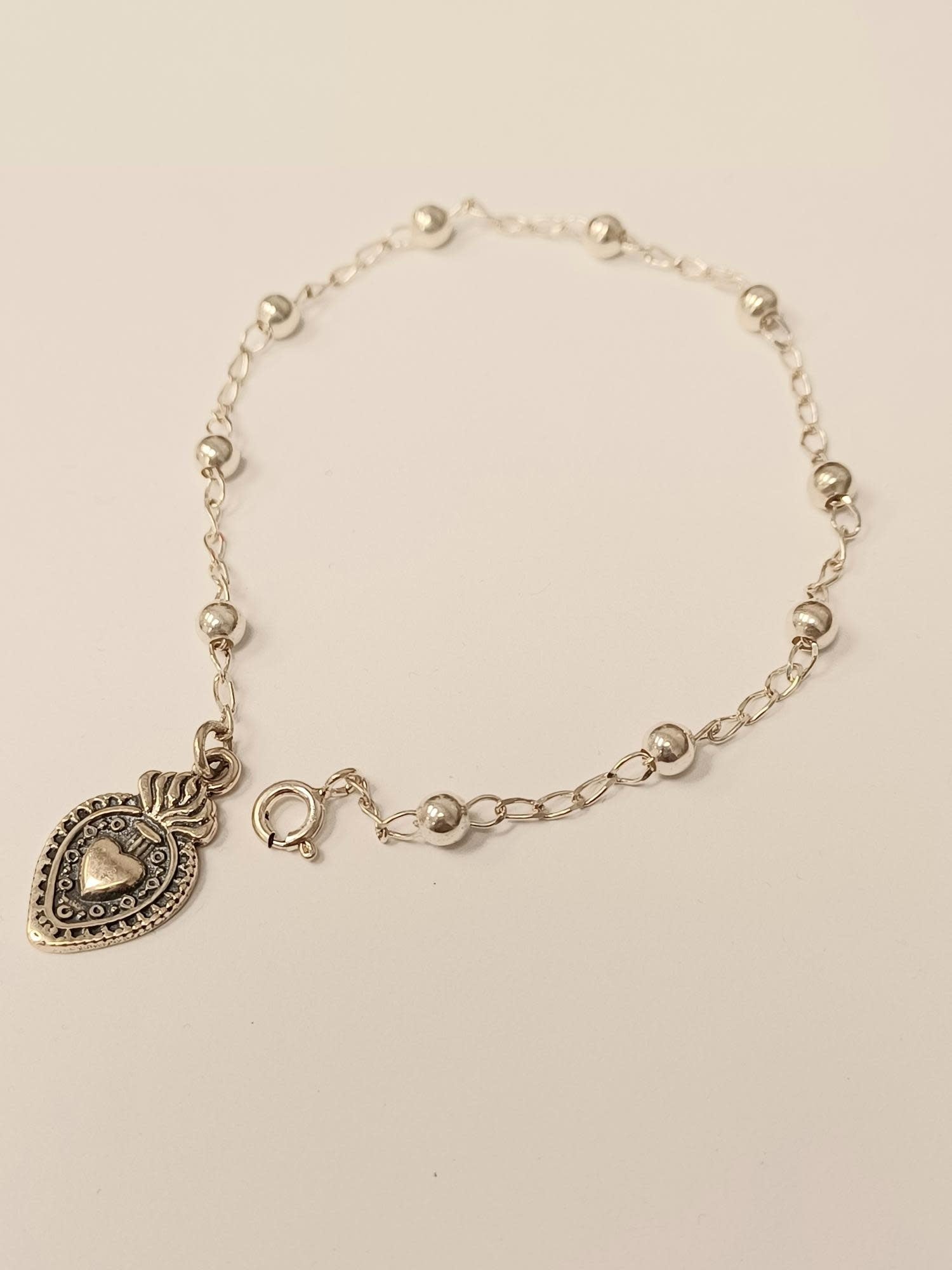 Sacred Heart Sterling Silver Rosary Bracelet 7.5"