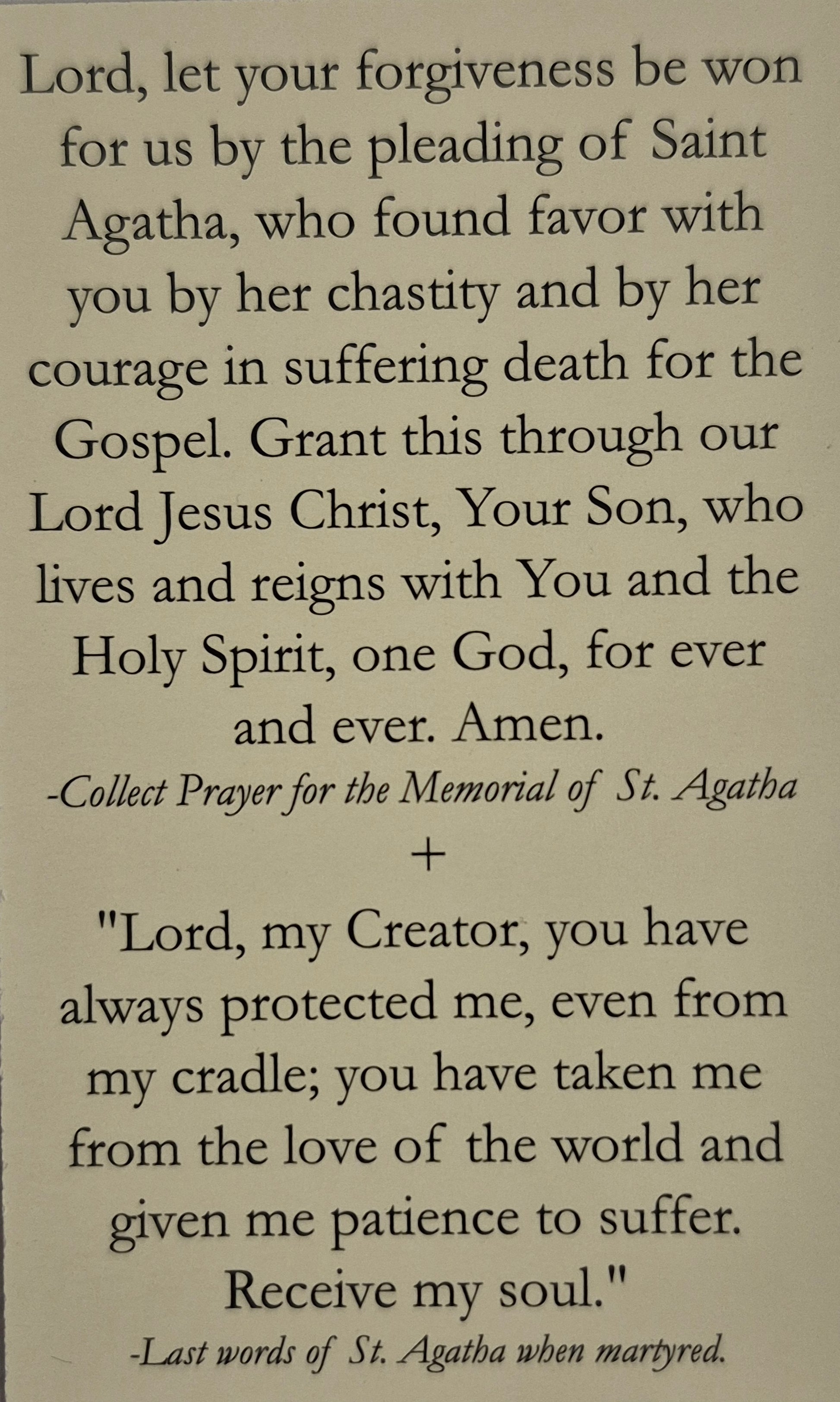 Saint Agatha Prayer Card