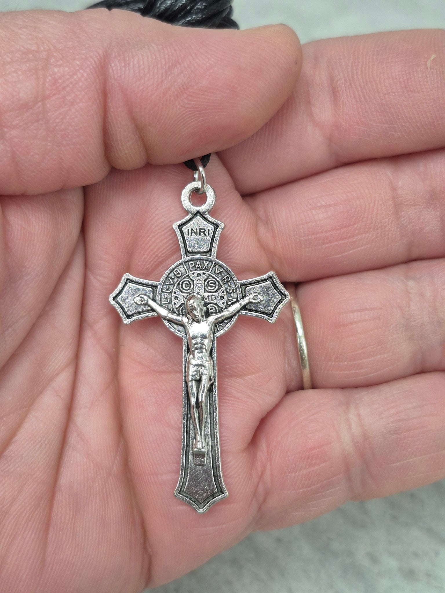 St. Benedict 2" Black Inlay Crucifix w/cord