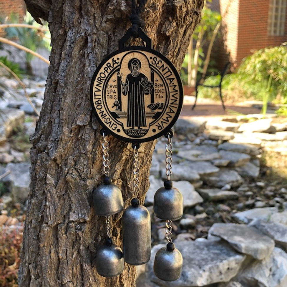 St Benedict Wooden Door Hanger w/Bells